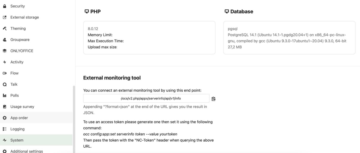 in my specific case, having PHP-FPM 8.0 and the PostgreSQL-instance running on the same server with Nextcloud’s webroot being located in /var/www/nextcloud.