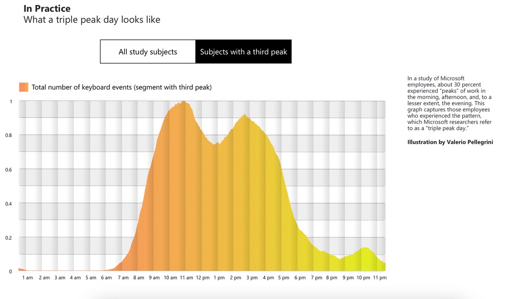 According to Microsoft, this line got thinner during the last past one and a half / two years. The average Teams-user now sends 42 percent more chats per person after hours, according to Microsoft Work Trend Index-findings. I am no exception here and many of my working mates do act similar but everything finally depends on the way how you adopt this flexibility and what positive aspects come along. While the recently-named Mary Czerwinski and her team analyzed the behavior of Microsoft-employees this summer, an 30-percent increased working spike in the evening hours were discovered based upon measured keyboard usage. Its intensity was less compared with the pre- and post-lunch slots, but it was an obvious impact that hasn’t existed before.