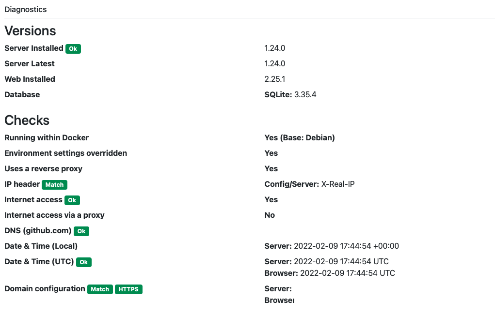 which will certify that the correct token was placed in the config-file by the initial Docker-command and, usually, there shouldn’t be a problem with accessing the administrative backened.