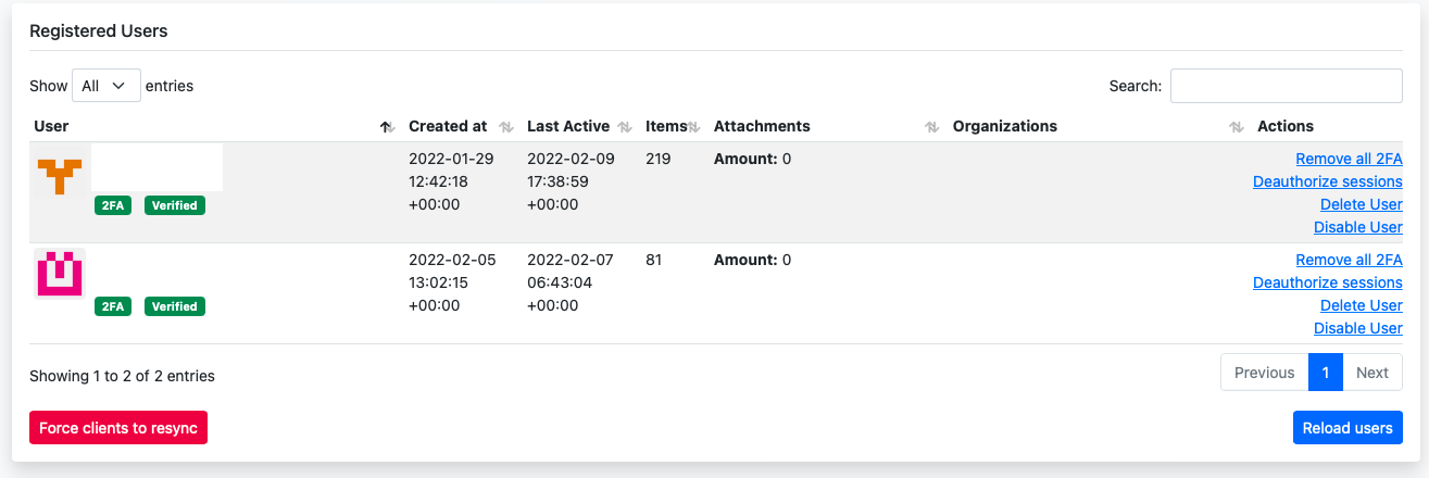 Additionally, you may with existing users and deauthorize them, remove 2FA for whatever reason, delete or disable them or force the clients to re-sync.